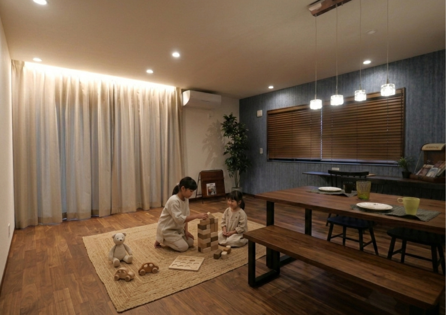ホーム 施工事例集 テイスト別 ホビーハウス 自転車&アトリエ HOUSE 自転車&アトリエ HOUSE 飯能市W様 テイスト別|ホビーハウス 玄関を一歩入ると広がる、自分だけの秘密基地。コンクリート調の壁とシックなライティングが、愛車を鮮やかに浮かび上がらせます。インターネットと接続されたこのサイクルルームは、天候に左右されず世界中のコースを駆け抜けるバーチャルロードサイクルの舞台。趣味を住まいの中心に据えたこの空間は、日常の喧騒を忘れ、ストイックに自分と向き合う、至福のひとときを約束してくれる。画像のみを表示全 12 枚中 1 枚目を表示Next ≫ 画像のみを表示全 12 枚中 2 枚目を表示≪ Prev|Next ≫ 玄関を開けた瞬間、家族を優しく迎え入れるのは、機能美を極めた大容量のシューズクローゼット。ベビーカーや外遊びの道具もそのまま収まる土間仕様は、忙しい育児世代の強い味方。注文住宅だからこそ叶う、動線を意識した設計が、慌ただしい朝にゆとりを運ぶ。出し入れのしやすさと収納力を両立し、いつも整った空間で家族の帰りをお迎えします。暮らしの質を底上げする、愛情溢れた収納アイデアとなっていますね。画像のみを表示全 12 枚中 3 枚目を表示≪ Prev|Next ≫ 目に見えない「おもてなし」を形にしたエントランス空間。2面に渡り贅沢にあしらわれたエコカラットは、美しい壁画のような佇まいながら、実は呼吸する壁。気になる湿気やニオイを抑え、常に澄んだ空気で家族とゲストを包み込む。逸品のペンダント照明がタイルの素材感を際立たせ、昼と夜で異なる趣を愉しめるのも魅力。機能美を追求するSH-Spaceが提案する、感性と健康の両方を満たす、上質な住まいづくりの象徴です。画像のみを表示全 12 枚中 4 枚目を表示≪ Prev|Next ≫ 柔らかなカーテン上部の間接照明が壁面を照らし、ブルーのアクセントクロスが空間に深みのある表情を与えます。洗練されたデザインの中に、どこか懐かしい温かさが漂うリビング。キッチンからお子様の遊ぶ姿を優しく見守れる開放的な間取りは、W様にとっても安心の設計。デザイン性と機能性が溶け合うこの場所は、忙しい日常を忘れさせてくれる至福の聖域。上質な素材に囲まれて、家族の笑顔が自然とこぼれる住まいです。画像のみを表示全 12 枚中 5 枚目を表示≪ Prev|Next ≫ リビングとフラットに繋がるワイドバルコニーは、家族の自由を解き放つ特別な空間。9帖という広々とした空間を高い壁が優しく包み込み、近隣を気にせずリラックスした時間を過ごすことができる。ワイドバルコニーの床材に選んだ高耐久な樹脂製ウッドデッキは、メンテナンスのしやすさと天然木のような質感を両立。お子様の遊び場としても、防犯性の高い家族のプライベートスペースとしても最適な空間。内と外が溶け合う設計が、住まいに新しい呼吸をもたらします。画像のみを表示全 12 枚中 6 枚目を表示≪ Prev|Next ≫ キッチンからリビングまで、遮るもののない開放的なレイアウト。ホワイトを基調としたキッチン周りは、視覚的な広がりと清潔感を生み出し、重厚なウォルナットの床が全体をどっしりと引き締めます。この絶妙なカラーバランスが、開放感の中にも落ち着きを感じさせる、居心地の良い空間を創出。ダイニン横の造作スタディコーナーは、整理整頓が楽しくなるような機能的な収納も備え、美しさと暮らしやすさが調和した、こだわりのLDKが実現しました。画像のみを表示全 12 枚中 7 枚目を表示≪ Prev|Next ≫ LDKの一角に溶け込むように設えられた、造作のスタディコーナー。一面に配したブルーのアクセントクロスが境界線となり、同じ部屋にいながらにして、ふと自分だけの世界へ没入できる不思議な安らぎを演出。ウッドブラインド越しにこぼれる陽だまりは、読書や仕事の時間をより豊かなものに。家族の気配を感じつつも、心地よい集中を叶える、注文住宅ならではの計算された「居場所」のカタチ。画像のみを表示全 12 枚中 8 枚目を表示≪ Prev|Next ≫ 広々としたキッチンは使い勝手もさることながら、小さいお子様が自由にのびのびと出来るよう余裕を持った作りに。画像のみを表示全 12 枚中 9 枚目を表示≪ Prev|Next ≫ キッチン横の扉を開けると広がるのは、奥様専用の特別なアトリエ。アンティークガラスが光を優しく通すブルーペイントの建具は、アイアンのアクセントパーツを添えて、世界にひとつだけの表情に仕上げました。お気に入りのアクセントクロスに囲まれた明るい空間は、家事の合間にふと自分に戻れる大切な場所。注文住宅だからこそ叶えられた、暮らしに豊かさとときめきを運んでくれる、憧れのプライベートスペース。画像のみを表示全 12 枚中 10 枚目を表示≪ Prev|Next ≫ トイレの一角に設えられた、まるでアートピースのような造作手洗い。あえて収納を設けない「引き算の美学」を貫くことで、限られたスペースに圧倒的な開放感とノイズレスな美しさを生み出しました。小ぶりでスクエアなボウ