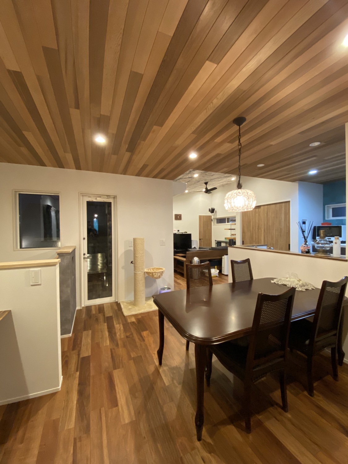 ホーム 施工事例集 地域別 日高市 モーター好きにはたまらない広々ガレージハウス モーター好きにはたまらない広々ガレージハウス 日高市A様邸 MUSTANG HOUSE=長期優良住宅認定 地域別|日高市 バイク好き、車好きにはたまらないガレージハウス。ガレージ内天井は、ブラックに塗装され渋さ倍増!照明もセンサー付きや、調光様々な仕様に対応できるのが注文住宅のおもしろさです。画像のみを表示全 19 枚中 1 枚目を表示Next ≫ 広々ガレージは、自動シャッター付き。バイク3台、車1台入れても作業スペースやディスプレイコーナーが余裕で確保できるのに耐震性に優れたガレージハウス。木造でもここまで造れてコスト的にも優しい、最高のガレージハウスです。画像のみを表示全 19 枚中 2 枚目を表示≪ Prev|Next ≫ ガレージ内には、シンクを設置し作業効率もアップ。混合水栓だから冬でもお湯が使えるので、寒さも気になりませんね!画像のみを表示全 19 枚中 3 枚目を表示≪ Prev|Next ≫ ガレージと玄関をダイレクトにつなぐ、人気の動線設計。開口部には大きな片引きテラスサッシを採用。スムーズなスライド操作で開閉でき、重い荷物を持っての移動やベビーカーでの出入りもノンストレスですね。機能性だけでなく、空間に開放感と光をもたらすスタイリッシュなデザインも大きな魅力。毎日の利便性と、玄関周りの美しい意匠性を高度に両立させたこだわりの空間となっています。画像のみを表示全 19 枚中 4 枚目を表示≪ Prev|Next ≫ 収納力抜群の玄関収納は、長物から何から収納可能!コンパクトながら必要最低限容量を確保。オリジナル階段鉄骨手すりは、形状もさることながら、日塗工の中からお好きなカラーで塗装できる完全オリジナルです!画像のみを表示全 19 枚中 5 枚目を表示≪ Prev|Next ≫ 開放的で洗練された雰囲気が魅力の階段ホール。視線を遮らない当社オリジナルのスリムな鉄骨手すりが、空間に奥行きとスッキリとしたモダンな印象をもたらします。さらに、壁面にはインダストリアルなデザインが際立つこだわりのオリジナルトグルスイッチを採用。操作するたびに心地よい、細部のディテールにまでセンスが光る空間デザインです。画像のみを表示全 19 枚中 6 枚目を表示≪ Prev|Next ≫ 額のように演出された玄関ホール見切り材には、真鍮材を用いることで高級感が感じられ、大きなFIX窓からはお気に入りのバイクや車が眺められます。玄関ドア横に、もう一つのドアを施工することでガレージから行き来が容易で、特に雨の日などは濡れることなく荷物の搬入ができ大助かりです!画像のみを表示全 19 枚中 7 枚目を表示≪ Prev|Next ≫ 玄関ホールからは、広いガレージを眺められお気に入りのバイクや車を堪能★窓台を活用したディスプレイも素敵です。画像のみを表示全 19 枚中 8 枚目を表示≪ Prev|Next ≫ なかなか見ない手作り感のあるデザインの照明は、お施主様支給品です。揺らぎのあるアクセントクロスをいい感じに灯していますね。画像のみを表示全 19 枚中 9 枚目を表示≪ Prev|Next ≫ お子様のリビング学習にも最適なスタディコーナーを、リビング階段に隣接してレイアウト。キッチンからも様子が見守りやすく、親子のコミュニケーションが自然と生まれます。オープンな階段室は、上下階の繋がりを深めるだけでなく、通風や採光にも優れた設計。こだわりのステンドガラスが、毎日の暮らしに心の豊かさを提供します。家族の成長に合わせて使いこなせる、可変性の高い住まいのカタチ。画像のみを表示全 19 枚中 10 枚目を表示≪ Prev|Next ≫ なんとも上品で落ち着きのある猫ちゃん!新しいお家はいかがでしょう(笑)思わずパシャリの1枚です。画像のみを表示全 19 枚中 11 枚目を表示≪ Prev|Next ≫ 圧倒的な存在感を放つ、エレガントな洗面室の内装。ラグジュアリーなアクセントクロスを贅沢に使用し、シックな黒の床材で空間を引き締めました。生活感の出やすい洗濯機スペースも、素材選びの工夫でホテルライクな仕上がりに。こだわりの壁紙が照明に映え、自分だけのプライベートな時間を優雅に彩ります。画像のみを表示全 19 枚中 12 枚目を表示≪ Prev|Next ≫ 家族が自然と集まり、語らう時間を豊かにするLDK。深みのあるアカシア突板の床と、レッドシダー天井の温もりが、空間全体に品格を与えます。仕切りのない開放感と、落ち着きを感じる篭り感が入り組んだ独自の設計は、職人の手間暇が光る唯一無二の設え。愛猫も家族も心地よく過ごせる広々とした空間で、毎日の暮らしを格上げします。素材選びと間取りにこだわった、理想の「皆が集うスペース」を実現。画像のみを表示全 19 枚中 13 枚目を表示≪ Prev|Next ≫ ゲストが使う機会も多いトイレは、住まいのセンスが凝縮される場所。WALPAの輸入クロスを大胆に採用し、どこを切り取っても絵になる空間に仕上げた。華奢でスタイリッシュなホルダー類を合わせることで、モダンで都会的な印象を与える。人気の高いデザイン壁紙を