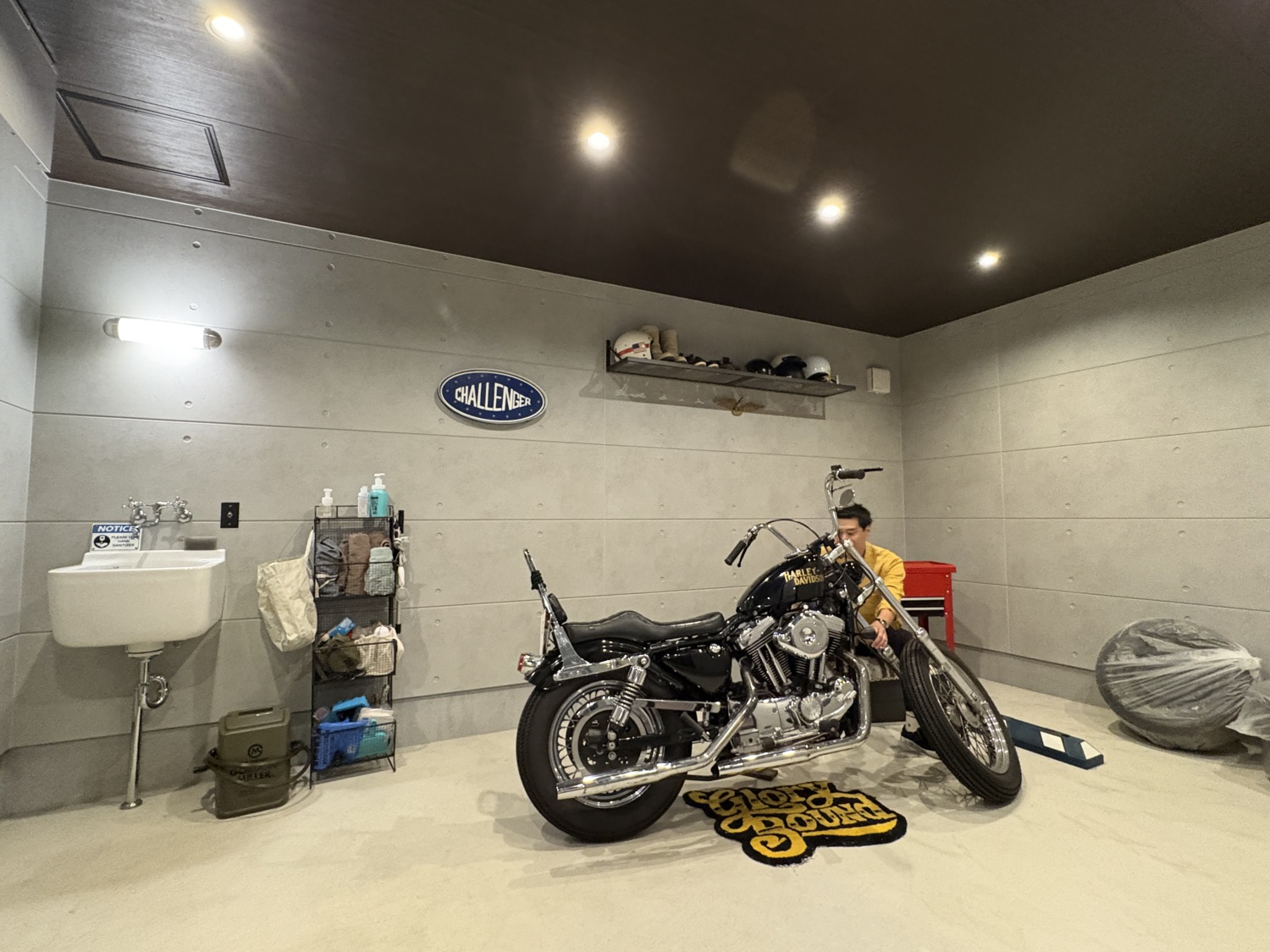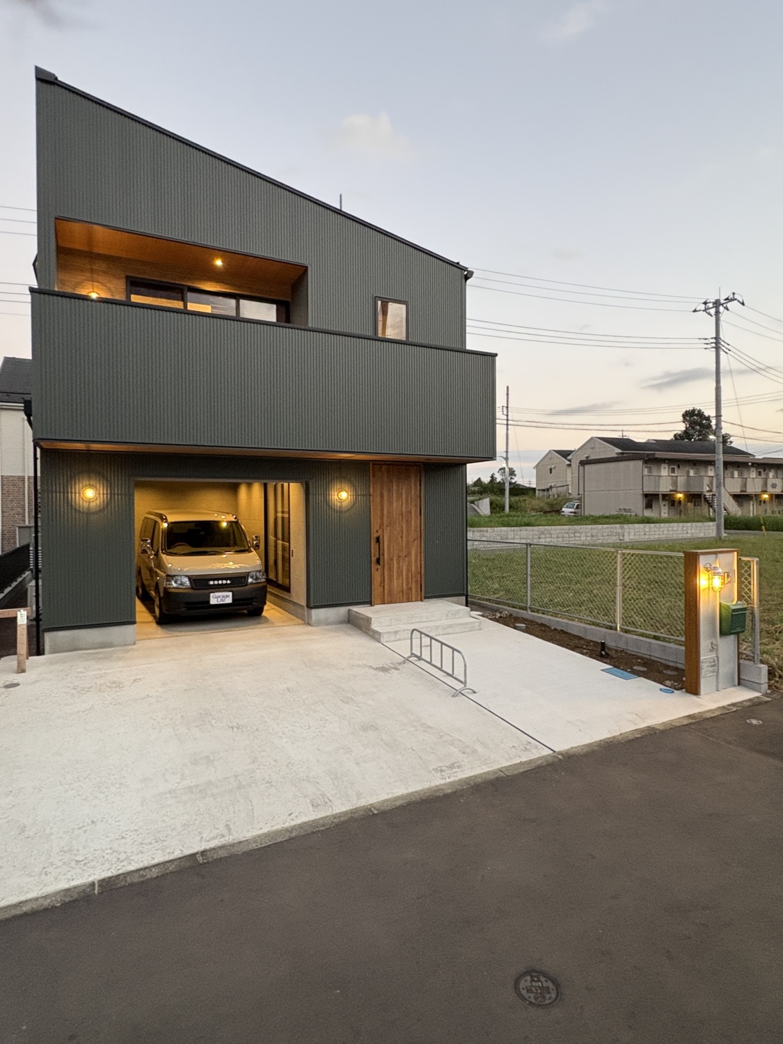 ホーム 施工事例集 テイスト別 ゼロエネルギー 好きに生きる、好きで造る。DULTON HOMEのガレージハウス 好きに生きる、好きで造る。DULTON HOMEのガレージハウス 坂戸市T様邸 好きがつまったこだわりのガレージハウス by DULTON HOME=長期優良住宅認定 テイスト別|ゼロエネルギー 深みのあるグリーンの長尺ガルバリウムが、周囲の風景に溶け込みながらも圧倒的な存在感を放つ外観。計算された照明の配置が、夜の帳の中で建物の立体美を鮮やかに浮かび上がらせます。門柱に輝くのは、ダルトンホームのオーナー様だけが冠することを許される「メンバーズプレート」。特別な家を建てたという確かな証が、帰宅する家族を誇らしげに迎え入れる、憧れのガレージハウスです。画像のみを表示全 19 枚中 1 枚目を表示Next ≫ ダルトンのスチールファニチャーはが似合う玄関は、あえての土間仕上げ。スイッチや照明にもコダワリ満載!画像のみを表示全 19 枚中 2 枚目を表示≪ Prev|Next ≫ 年月とともに風合いを増すダルトンの家具。その独特のオーラは、玄関を一瞬でクリエイティブな空気感に変えてくれます。すぐ隣のガレージは、ベビーカーから重厚なギアまで守り抜く、家族の頼もしいバックヤード。雨の日の片付けも、外遊びの準備も、ここならストレスフリー。使い勝手の良さと、眺めるだけで心が満たされる美学が、このガレージハウスには息づいています。画像のみを表示全 19 枚中 3 枚目を表示≪ Prev|Next ≫ ガレージ空間は、男達(ご主人達)だけのものじゃない!玄関ホールとガレージを繋げる大きな開口部はのおかげもあって、雨の日の日常や子育てにも大活躍♬画像のみを表示全 19 枚中 4 枚目を表示≪ Prev|Next ≫ 玄関ホールを抜けると、そこは愛車が主役のプライベートステージ。引き違いサッシで繋がる大開口が、住まいとガレージの境界を心地よく曖昧にします。コンクリート調の質感に囲まれた空間で、ハーレーの鼓動を感じる贅沢。雨の日こそ、オイルの香りと工具の音に浸る至福のひとときを。趣味を日常に溶け込ませた、究極のビルトインガレージハウスです。画像のみを表示全 19 枚中 5 枚目を表示≪ Prev|Next ≫ ベッドルームのすぐ隣には、大容量4帖弱のウォークインクローゼットを完備。夫婦の衣類から季節ものまで余裕で飲み込む圧倒的な収納力が、居住スペースのノイズを消し去ります。優しく照らす照明と、洗練されたダークトーンの壁面。整理整頓という「機能」をWICに預けることで、寝室は純粋に「休息」を楽しむための聖域へと昇華しました。機能美に包まれてまどろむ、豊かなガレージライフの夜。画像のみを表示全 19 枚中 6 枚目を表示≪ Prev|Next ≫ 広い洗面スペースで洗濯物が多い子育て中も楽々。ガス乾燥機を装備し室内物干しを設置することで、洗濯物は脱衣室で完結!洗濯後は、洗濯室の造作収納棚へ。画像のみを表示全 19 枚中 7 枚目を表示≪ Prev|Next ≫ オリジナルの逸品、鉄骨手すりはお施主様のお好みのカラーで仕上げ、さらに愛着が湧くこと間違いなし。画像のみを表示全 19 枚中 8 枚目を表示≪ Prev|Next ≫ 空間を仕切るのではなく、豊かに繋ぐための室内窓。職人の魂が宿るスチール製のフレームは、画像越しでも伝わる圧倒的な存在感を放ちます。オリジナルカラーの鉄骨手すりが添える統一感は、まさにインダストリアルインテリアの極み。温かな照明に照らされた鉄の黒は、どこか優しく、家族の気配を柔らかに届けます。階段室隣に設けた多目的スペースは、ライフステージに合わせて用途を変えられる「家族の余白」。子供たちの笑い声が響く今は遊び場として、将来は自分らしく整う書斎として。未来の愉しみが広がります。画像のみを表示全 19 枚中 9 枚目を表示≪ Prev|Next ≫ ダイニングを単なる食事の場ではなく、お気に入りのカフェのように。壁面に取り付けたダルトンホームオリジナルの室内窓が、空間に奥行きを与え、階段室と緩やかにリンクします。プライベートな落ち着きを保ちつつも、閉塞感を感じさせない絶妙なバランス。素材や色使いへのこだわりが、毎日の食卓をクリエイティブで愉しい時間へと変えてくれます。画像のみを表示全 19 枚中 10 枚目を表示≪ Prev|Next ≫ カフェのような独立したダイニングスペース。子ども部屋に繋がるR壁を施した面がアクセントに。画像のみを表示全 19 枚中 11 枚目を表示≪ Prev|Next ≫ 4.5畳の広いキッチンには、豊富な収納庫を完備。見せる収納に持ってこいの材にこだわった可動棚!キッチンとダイニングの直線動線は、食事の用意も後片付けも楽々!画像のみを表示全 19 枚中 12 枚目を表示≪ Prev|Next ≫ 4.5畳という広々としたキッチン空間は、複数人で立ってもストレスフリー。料理を愉しむ時間が、家族の自然なコミュニケーションを生み出します。隣接するパントリーは、豊富な収納力と使いやすさを両立した頼もしい存在。子ども部屋へと続く柔らかなR壁が、無骨なインダストリアル空間に優しいアクセント