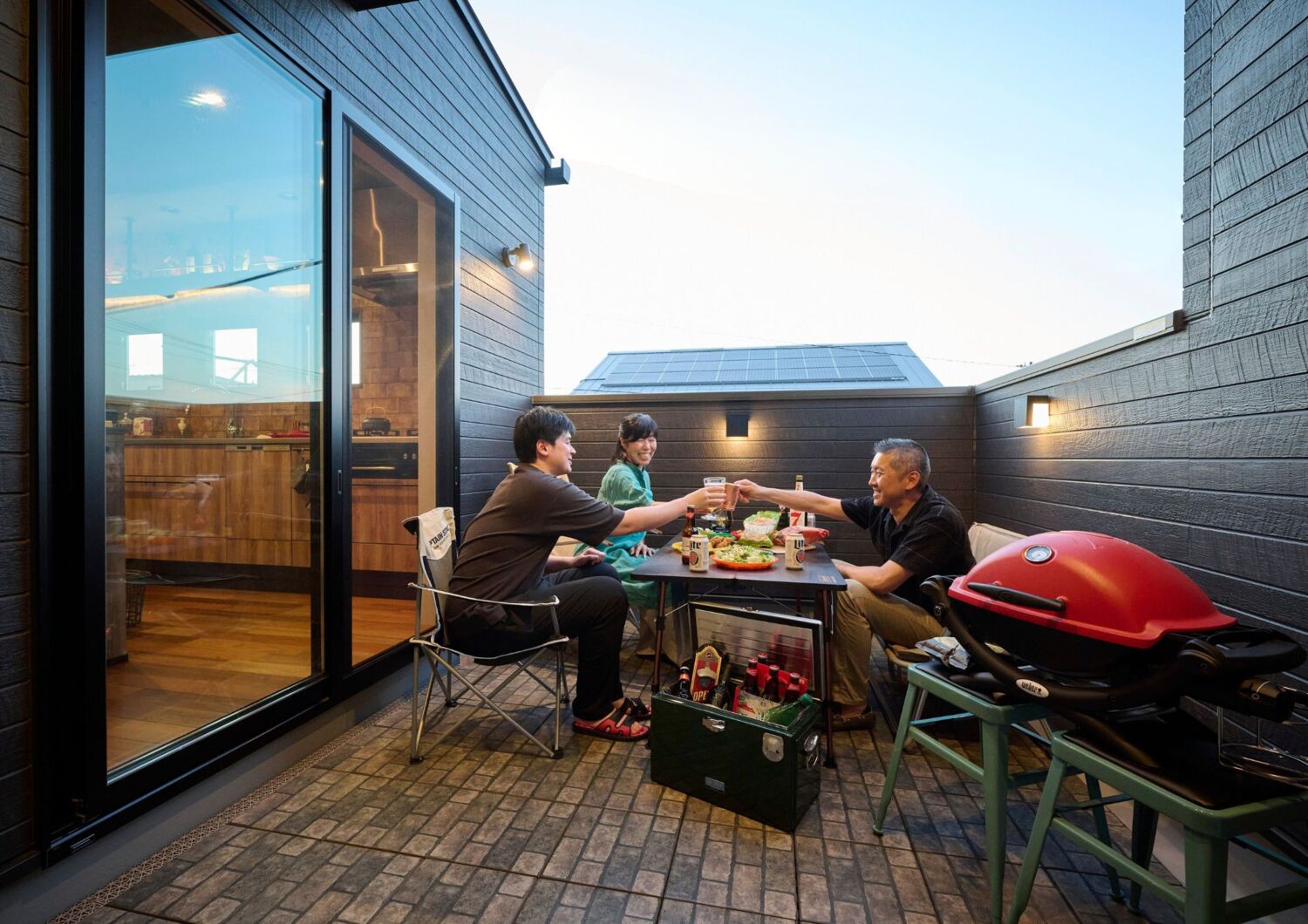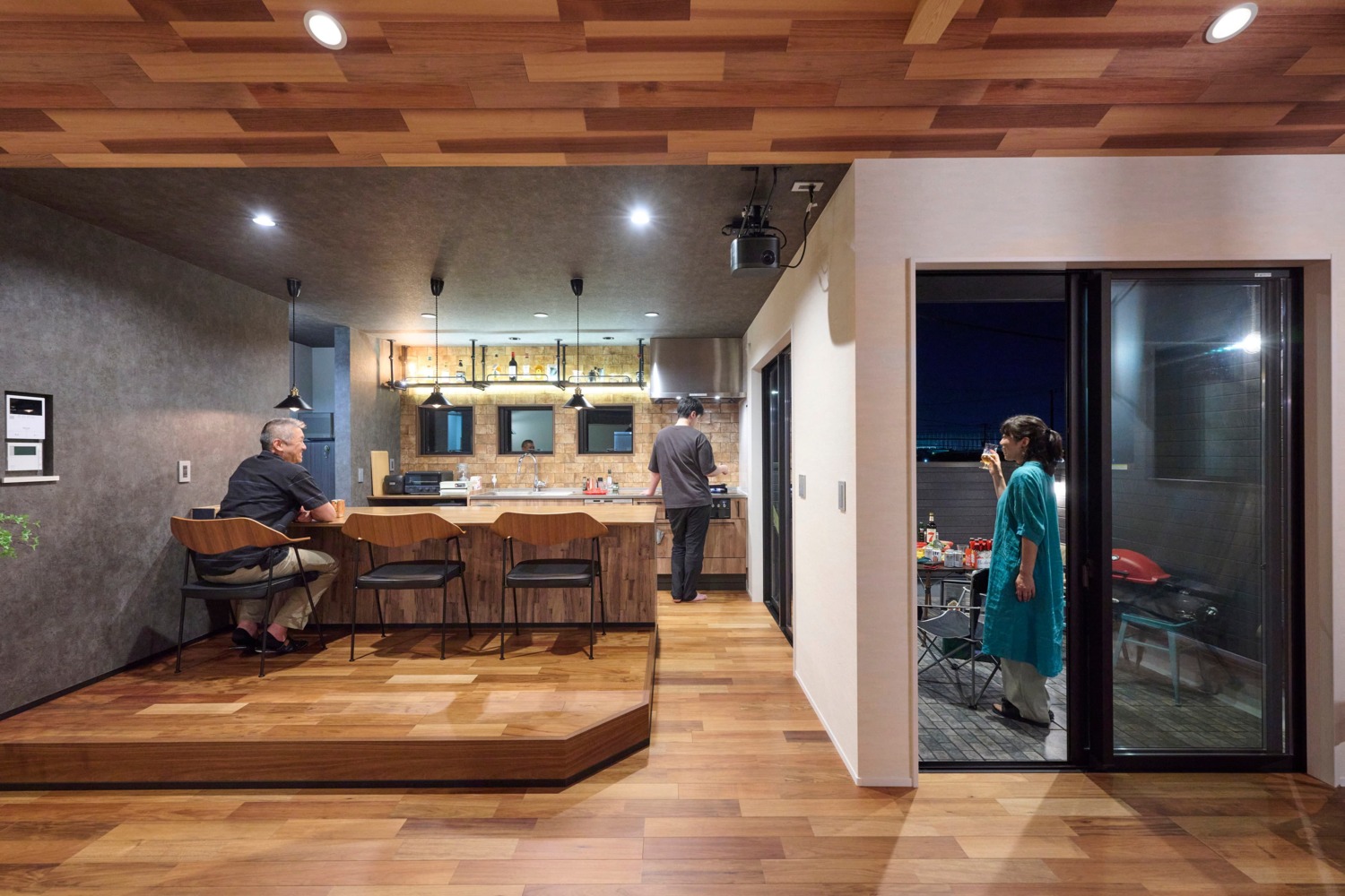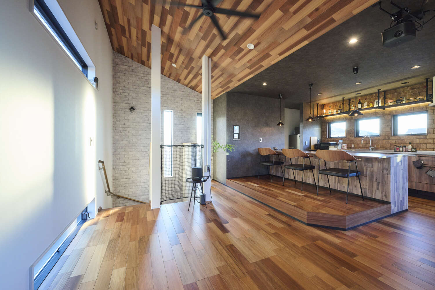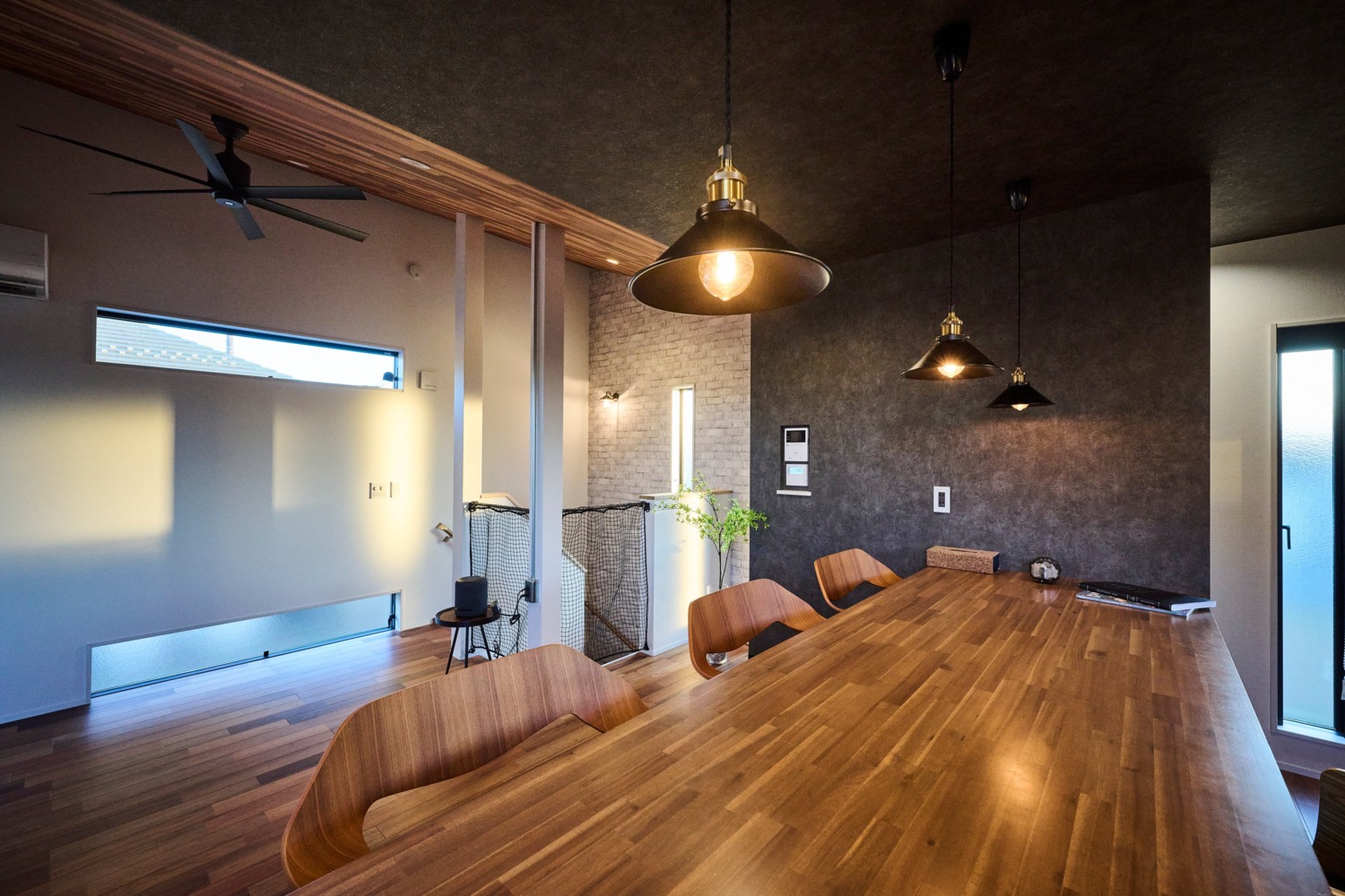 ホーム 施工事例集 テイスト別 ブルックリンスタイル 借景と趣味と暮らしの楽しさを詰め込んだミニマムハウス 借景と趣味と暮らしの楽しさを詰め込んだミニマムハウス 日高市M様邸 北の景色を楽しむ家 テイスト別|ブルックリンスタイル 継目の目立たないサイディングを張り、軒下はすべてブラックの塗装しました。ここが通常のホワイトだとまったく雰囲気の違う外観になります・・・あえてタイルを貼らないシンプルな土間仕上げの玄関ポーチ、無骨で外観にもマッチしていますね。画像のみを表示全 23 枚中 1 枚目を表示Next ≫ 表札は人気の真鍮製で上質に。玄関まわりは、お施主様各々の個性が出る箇所の一画です。画像のみを表示全 23 枚中 2 枚目を表示≪ Prev|Next ≫ 光と風の入りを考え、玄関ドア横には縦すべりのサッシをスタイリッシュに埋め込みました。天井にはライティングレールを取付け可動式の照明でディスプレイされたものを雰囲気よく照らし出します。画像のみを表示全 23 枚中 3 枚目を表示≪ Prev|Next ≫ 光と風の入りを考えた趣味の自転車の整備ができる4.5 帖の明るい玄関土間スペース!多趣味なお施主様を満足させる、ディスプレイも兼ね備えた見せる収納。壁には有孔ボードを張り、自転車をディスプレー。隠す収納として扉付きの0.5 帖の収納スペースも備えた。画像のみを表示全 23 枚中 4 枚目を表示≪ Prev|Next ≫ お施主様支給の照明器具。無骨でインダストリアルな雰囲気もありつつ存在感を放ち、広い土間玄関の主役となりますね。アクセントクロスとの相性も抜群です!画像のみを表示全 23 枚中 5 枚目を表示≪ Prev|Next ≫ 収納力抜群のスッキリしたとシンプルな脱衣室。コンパクトで使い勝手を重視しました。画像のみを表示全 23 枚中 6 枚目を表示≪ Prev|Next ≫ 白系のレンガ調のアクセントクロスを用いた明るい階段室、隣家からの視線を配慮した窓の配置も美しさに一役かって開放感抜群。画像のみを表示全 23 枚中 7 枚目を表示≪ Prev|Next ≫ アカシアの突板の床材は、コントラストの利いた濃淡で素敵な風合いを醸し出しています。全体的にグレー系のアクセントクロスで、こもり感を演出。オリジナル造作のカウンターと、粋な小上がりを造ることでレストランのようなダイニングキッチンになりましたね。趣味のひとつの料理でおもてなしが出来る理想の空間です。画像のみを表示全 23 枚中 8 枚目を表示≪ Prev|Next ≫ キッチンと繋がるワイドバルコニーは、跨ぎを無くしスムーズな行き来が可能。プライベートを心ゆくまで楽しめる自由気ままなスペースで、友人たちを招いての食事会が、自宅を楽しいコミニュティスペースに。画像のみを表示全 23 枚中 9 枚目を表示≪ Prev|Next ≫ 床には濃淡が味わい深い標準仕様のアカシア突板を、キッチンの壁には建主が選び抜いたタイルを使用。オリジナルの造作ダイニングテーブルと小上がりは、レストランのような空間に仕上げにしている。天井を濃い内装にすることで、こもり感を演出。画像のみを表示全 23 枚中 10 枚目を表示≪ Prev|Next ≫ お施主様の身長と作業性を考慮して、造作したダイニングテーブル。耐水性のあるカウンター材を使用し、デザイン性だけでなく実用性を重視したオリジナル仕様。画像のみを表示全 23 枚中 11 枚目を表示≪ Prev|Next ≫ 隣家の窓位置を考慮しつつ、プロジェクター投影のスクリーンスペースも考慮し窓を配置。設計の段階から家具・家電の配置を検討し、インテリアをコーディネート。「趣味とこだわり」を楽しむ。画像のみを表示全 23 枚中 12 枚目を表示≪ Prev|Next ≫ お施主様セレクトのチェア。SCALEさんでご購入です。ブルックリンスタイルのダイニングにピッタリですね。画像のみを表示全 23 枚中 13 枚目を表示≪ Prev|Next ≫ コントラストの利いた勾配天井のアクセントクロスは、とてもリアルでスタイリッシュなシーリングファンとのコンビネーションが抜群です。画像のみを表示全 23 枚中 14 枚目を表示≪ Prev|Next ≫ 揺らぎと渋さが融合した名古屋モザイクタイルを一面に敷き詰めました。見せる収納のウォールシェルフ、キッチン天板はステンレスといったレストランカフェのような空間です。画像のみを表示全 23 枚中 15 枚目を表示≪ Prev|Next ≫ ステンレス製のレンジフードがカッコいいキッチン。お施主様支給の配管ウォールシェルフ、レッドの栓が全体を引き締めています。画像のみを表示全 23 枚中 16 枚目を表示≪ Prev|Next ≫ 隣接する建物配置を考慮し、セカンドリビングとしての位置付けであるワイドバルコニー。南側にバルコニーを配置すると、プライベート性を確保できないため、接道面である北側にバルコニーを配置。ワイドバルコニー床には、ダルトンオリジナル置きタイルを敷き詰め、雨仕舞を気にせず、お掃除もラクで耐久性のある優れもの。画像のみを表示全 23 枚中 17 枚目を表示≪ Prev|Next ≫ 映り込みが芸術的に美しい寝室。ゆったりとした時間が流れるそんな演出が垣間